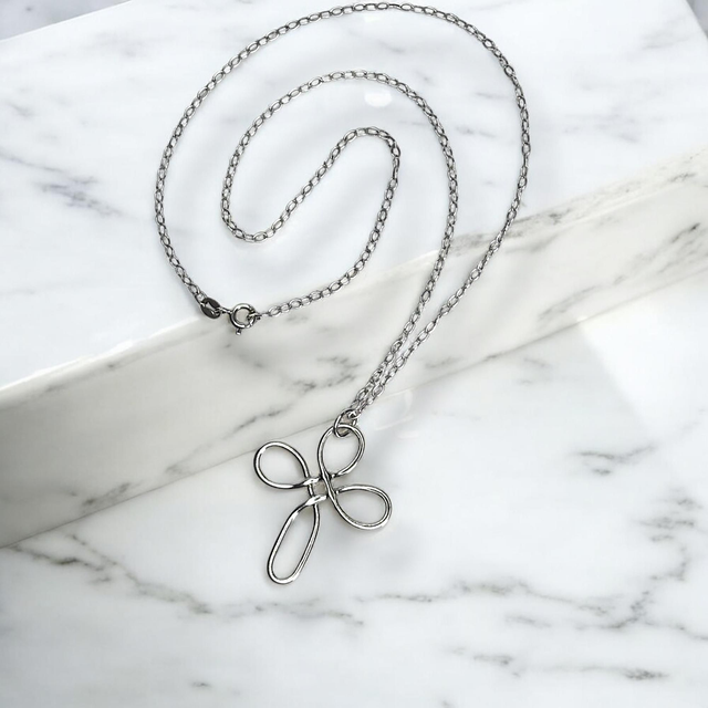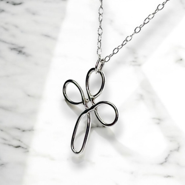 This pendant is from 1.5mm silver wire and measures approximately 37mm in length, and comes complete with an 18 inch trace chain.